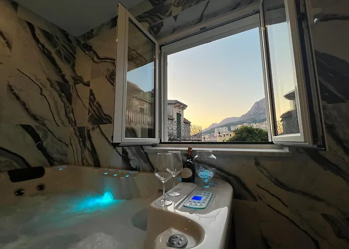 The spacious 127 m^2 Centrum is at a distance of 3.6 km from Plaza Hotela Jadran Public Beach and boasts spa facilities such as a Jacuzzi. The 2-bedroom apartment is located only a 5-minute walk from Shopping center St. Nikola and just off Biokovo Mountain.